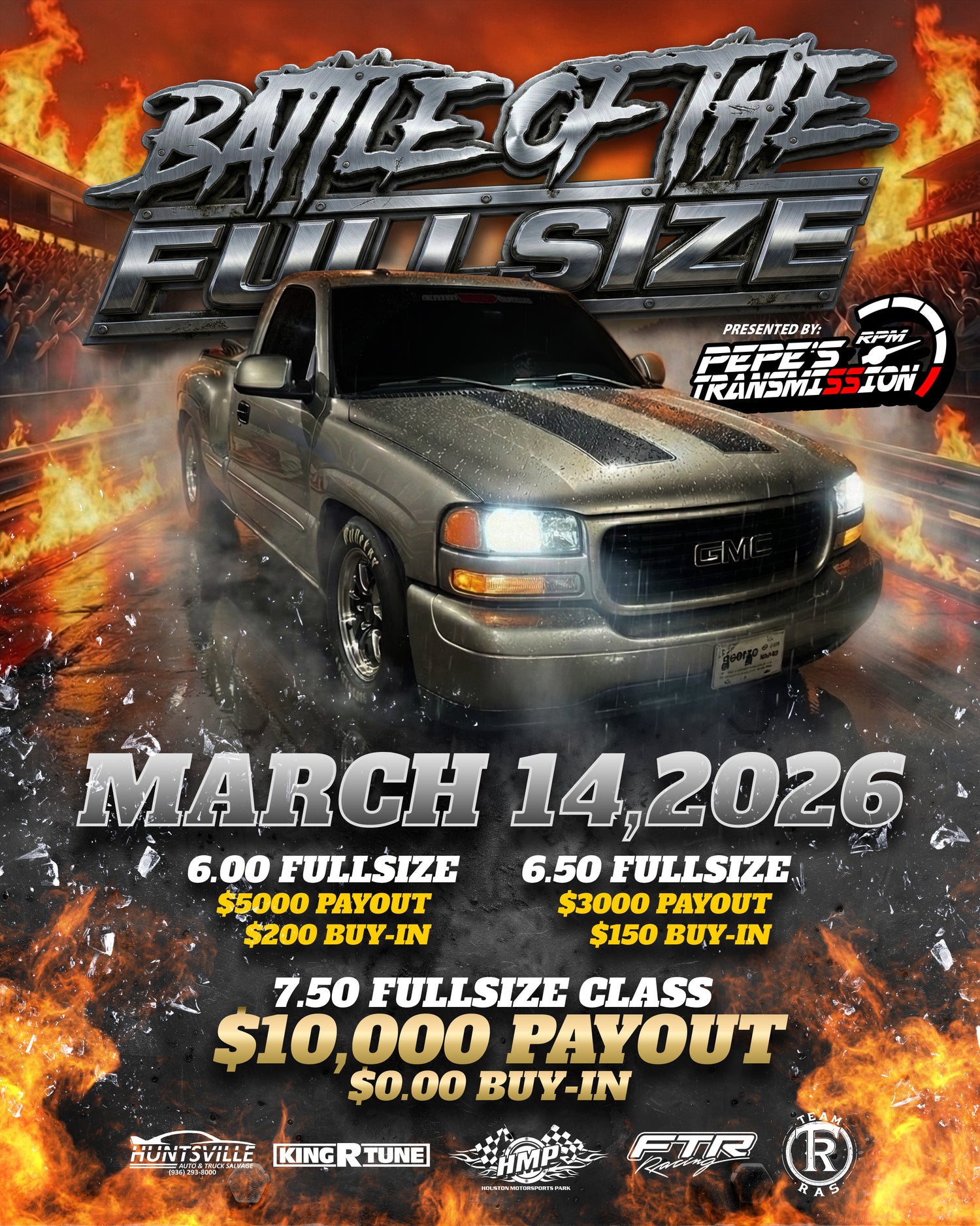 Battle of the Fullsize is the biggest all Truck event in TX. You dont want to miss out on seeing some of the best trucks battle for the big price. Bring your cooler and enjoy a full day of racing. Follow us on our social media for all the details.