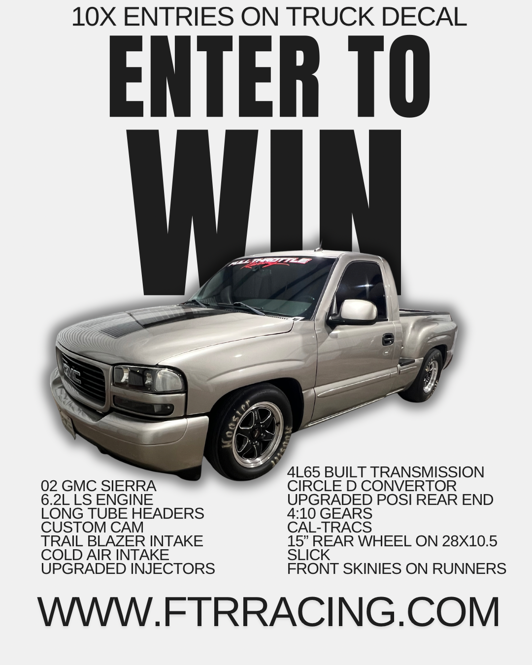 ENTER TO WIN THIS 2002 GMC SIERRA 6.2L FULL BOLT-ON